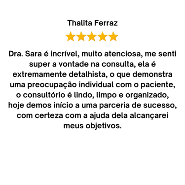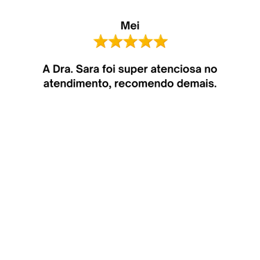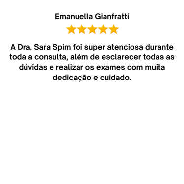 Olá, eu sou a Dra. Sara Spim, meu atendimento é personalizado, garantindo uma experiência única.