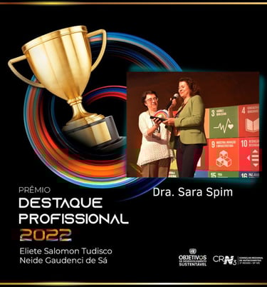 Nesta seção quero compartilhar com vocês os prêmios que recebi, dentre eles o Prêmio Destaque Profissional CRN3 de 2022, também desenvolvo projetos sociais e com essas ações fui certificada pelo Selo Social 2022 e 2023