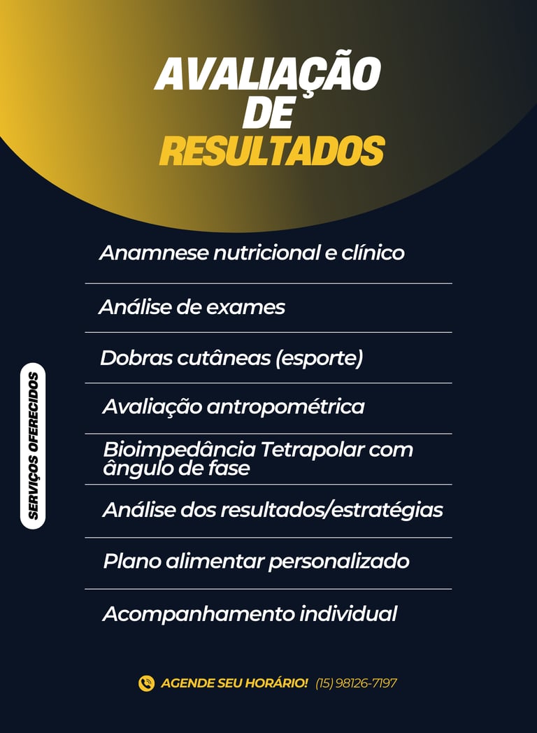 Em meu consultório utilizo a Bioimpedância Tetrapolar com Ângulo de fase. O exame de bioimpedância tetrapolar com ângulo de fase é uma técnica avançada de avaliação da composição corporal. Os resultados fornecidos por este exame servem para monitorar a eficácia de programas de exercícios e dieta, ajustar planos de tratamento para pacientes com condições médicas específicas, como obesidade ou sarcopenia (perda de massa muscular relacionada à idade), e até mesmo para avaliar o estado nutricional de atletas de alto rendimento.